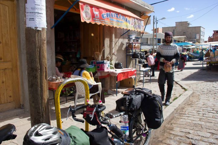 Seriam nossos últimos dias na Bolívia. Saímos de La Paz rumo a El Alto a bordo de uma van coletiva maluca. Nos despedimos dos amigos da casa de ciclistas e colocamos as 4 bicicletas no topo do veículo, rezando pra tudo dar certo. Quatro bicicletas porque partimos na companhia de Galina e Florin, aquele casal que encontramos na Terra do Fogo, no segundo dia da primeira viagem de bicicleta deles. Seis meses depois, vários encontros por acaso depois, estávamos pedalando juntos.