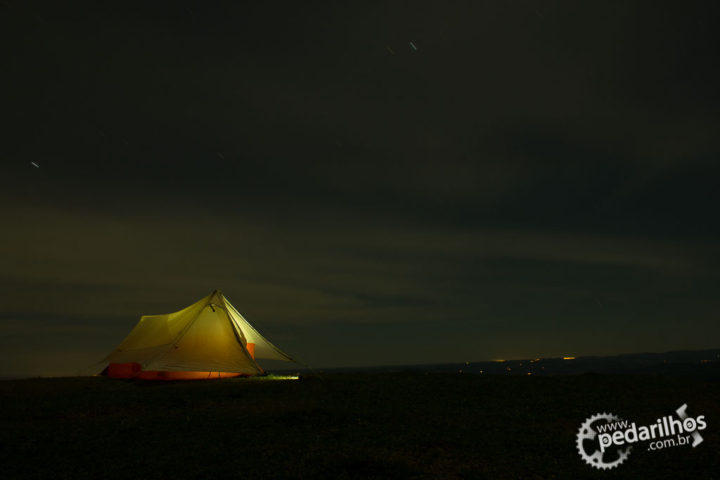 Acampamos por mais de 30 noites com esta barraca, algumas aqui no sítio, outras no morro mais alto do município, e depois fomos mais longe fazer um teste mais exigente, na Serra do Mar, Paraná.