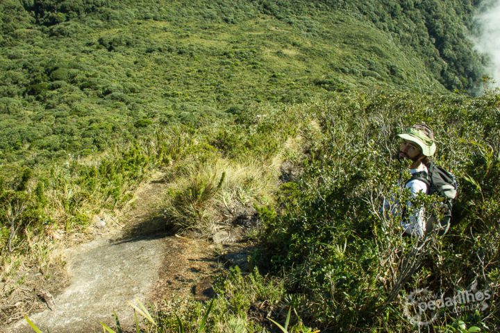 Se caíssemos ali nunca iam nos achar, porque essa não é a trilha! Os sinais escassearam até sumir por completo. Atalhos nunca dão certo, ouça bem, NÃO DÃO CERTO!(Gente, NÃO façam o mesmo que fizemos, pegar atalho e trilha que não existe. Não façam! JUST DON’T).
